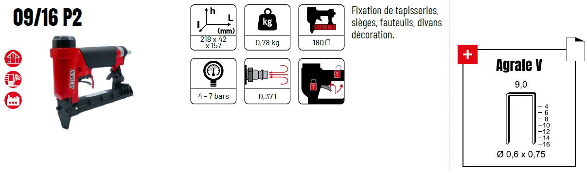 Agrafeuse pneumatique ALSAFIX 09/16 P2 – Bec court pour agrafes V ou 71