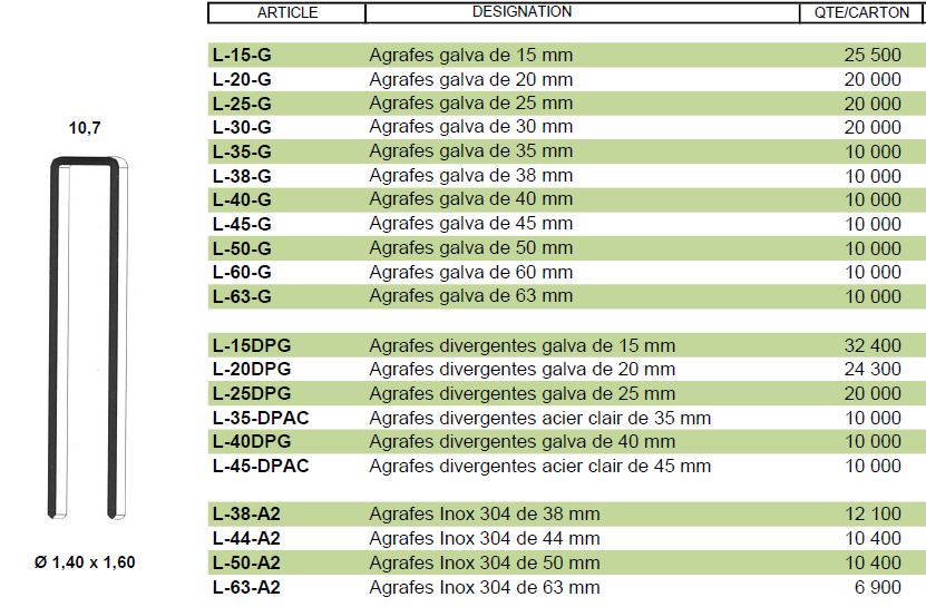 Agrafes : L de 20 à 65 mm