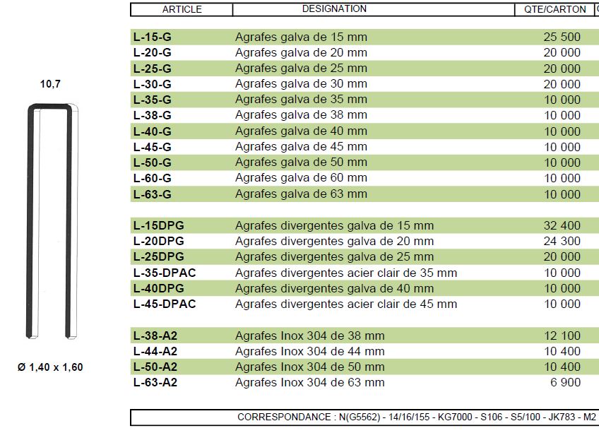 Agrafes : L de 20 à 50 mm