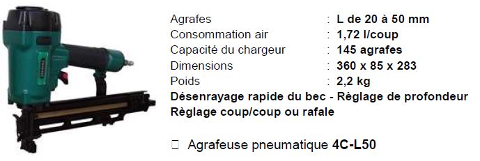 Agrafeuse pneumatique PREBENA 4C-L50 pour agrafes L de 20 à 50mm