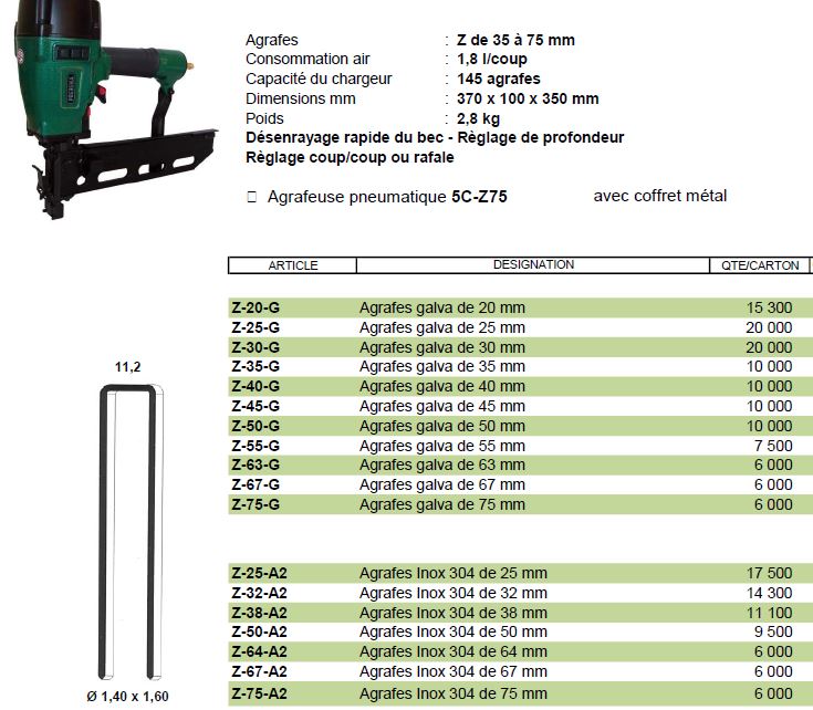 Agrafes : Z de 35 à 75 mm