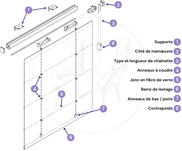 Tout pour le store bateau : jonc, rail, chaînette et accessoires